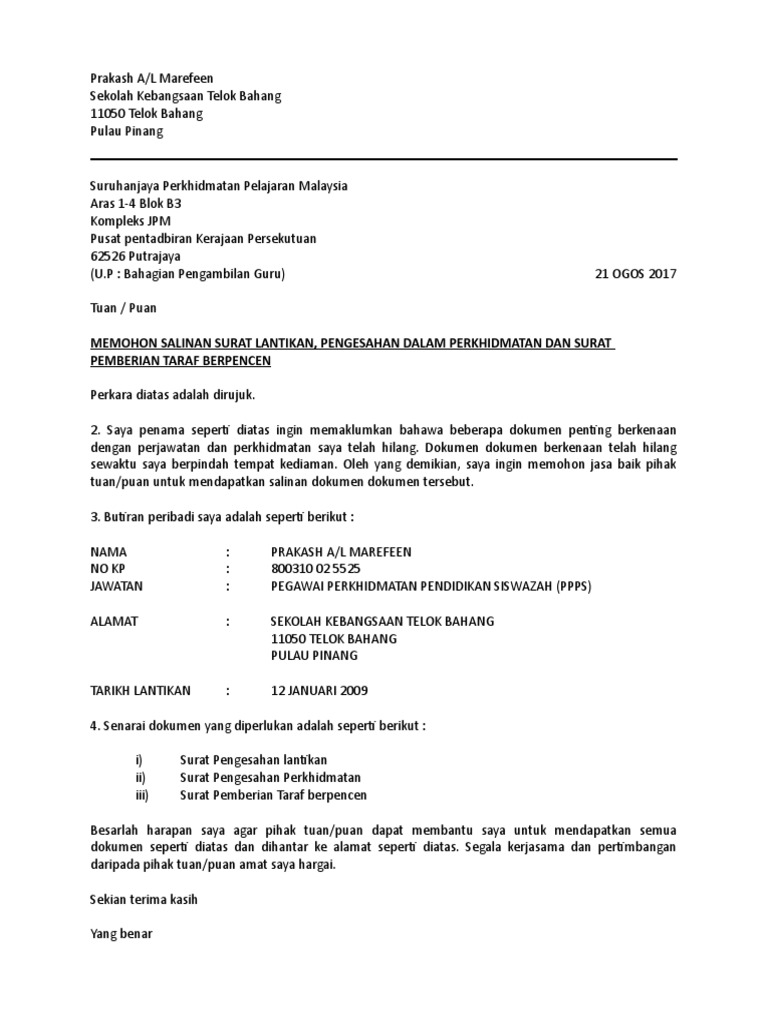 Surat Pemberian Taraf Berpencen Letter 7saudara Com