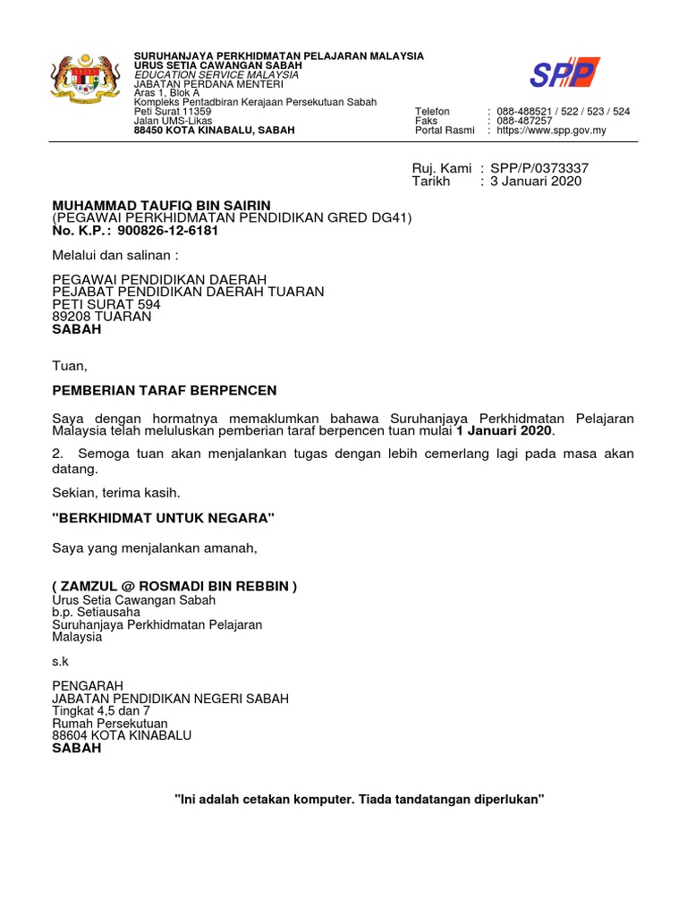 Surat Pemberian Taraf Berpencen Terbaru Letter Website